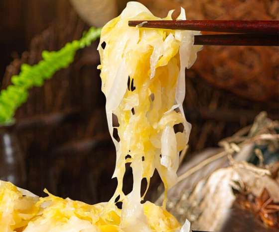 东北人食酸菜历史由来已久,大致始于1578—1893年之间,是由大白菜腌制而成。东北酸菜的制作历史悠久,北魏时期的《齐民要术》便详细介绍了白菜腌渍酸菜的方法。民间流传“百家酸菜百家味”的说法,即每家每户的酸菜味道各有不同。东北酸菜保留了蔬菜的营养成分,维生素C、氨基酸和膳食纤维等。东北酸菜口感酸脆爽口,经过发酵后的酸菜,酸味浓郁但不刺鼻,带有一种独特的发酵香气,让人胃口大开。东北酸菜的做法多种多样,可以炒、炖、煮、蘸酱吃,甚至直接空口吃。常见的菜肴有酸菜炒粉条、酸菜炖猪肉、酸菜鱼、杀猪菜、酸菜饺子等。在物